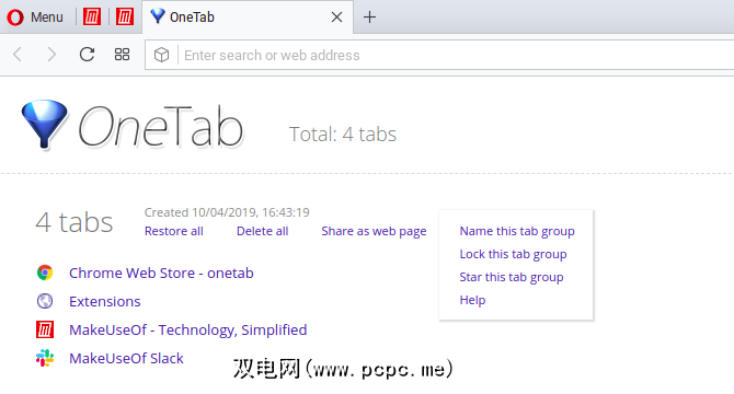 如果您始终打开的标签页超出了浏览器的处理能力,则需要OneTab使所有标签页都可访问,而不会占用浏览器的资源