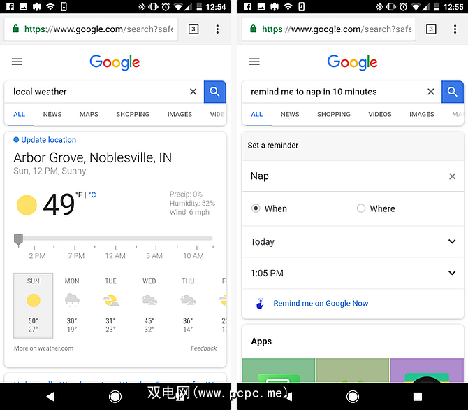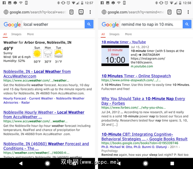 另一个要点是Chrome与其余服务的集成:您可以使用非常具体的搜索词组来触发与其他服务。例如,输入“提醒我在10分钟内打p"之类的内容将触发浏览器向您显示一个小部件,您可以在其中使用Google即时从字面上设置提醒。如果您已安装该应用程序,实际上会在手机上触发警报。
