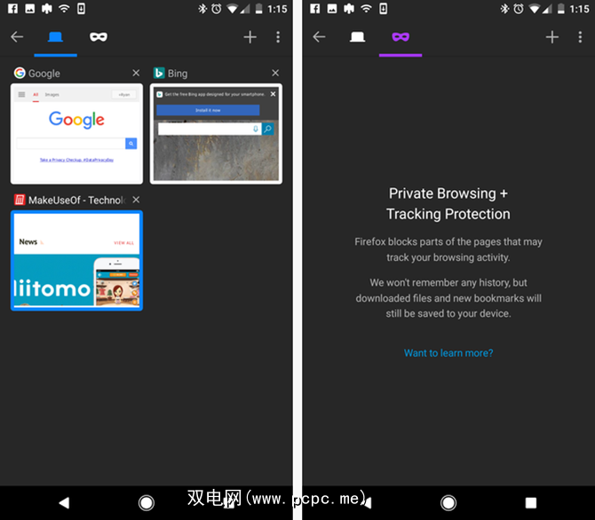 Firefox移动浏览器也具有与Chrome浏览器的“隐身模式"等效的功能,称为“私人浏览"。如果这是您经常使用的功能,那么我们已经介绍了最好的移动私人浏览器。