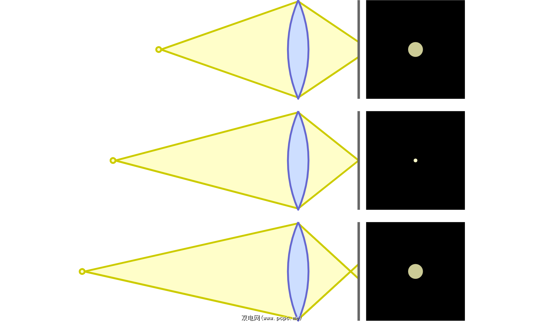 弥散圆是允许光点到达传感器的最宽直径,同时仍然使发送它的对象保持对焦。