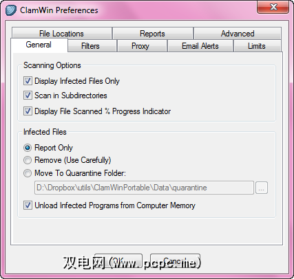 如果您想知道要使用哪个版本, m使用便携式版本0.97.3进行了此次审核。该最新版本除了具有该防病毒功能的主要功能(病毒扫描程序,扫描计划程序,自动病毒数据库更新以及与Windows资源管理器和Microsoft Outlook的集成)之外,还改进了字节码签名匹配。