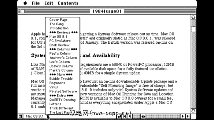 您可以查看1984年的《电子杂志》,这是专门针对Mac的早期在线出版物。该问题已审查Mac OS 8.1。仅仅将系统规格与最现代的Mac进行比较就令人惊讶。
