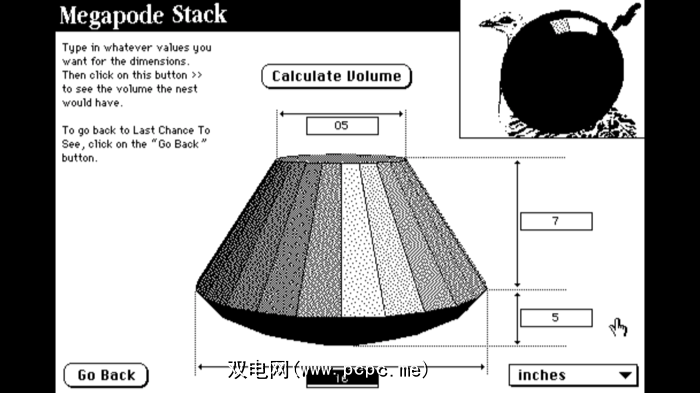 银河漫游指南》的粉丝可能知道道格拉斯·亚当斯(Douglas Adams)是一位相当著名的Mac奉献者。他创建了一个名为Megapode的超级卡堆栈,您可以在此处浏览。而不是某些怪异的程序,它对于Megapodes的嵌套大小来说是一个奇怪的计算器。