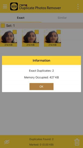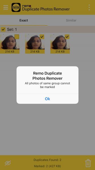 扫描完照片库后,雷莫(Remo)在一个选项卡中排列了所有完全相同的副本,在另一个选项卡中排列了所有相似的照片。在这两个选项卡中,您可以一次选中整个重复/相似图像集的复选框。您还可以选择在删除照片之前分别选择/取消选择这些照片。