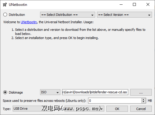 接下来,您需要将应急光盘刻录到USB或CD。我要使用USB,因为这是我要处理的,我将使用UNetbootin将ISO刻录到USB。