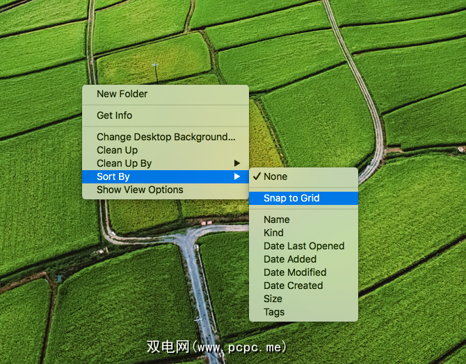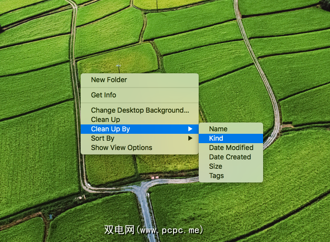 如果您认为桌面上的文件需要某种结构,则可以让Mac自动对它们进行排序。为此,请右键单击桌面上的任何空白区域,然后单击清理依据。您可以从以下选项中选择: