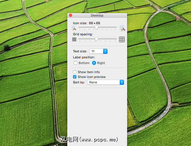 大图标显然会占用桌面上更多的空间。幸运的是,macOS可让您缩小桌面图标的大小。为此,请右键单击桌面上的任何空白区域,然后单击显示视图选项。在这里,您可以根据自己的喜好调整图标大小。