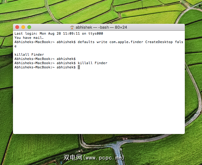 defaults write com.apple.finder CreateDesktop falsekillall Finder这应该隐藏所有桌面图标。要恢复图标,请键入以下命令: