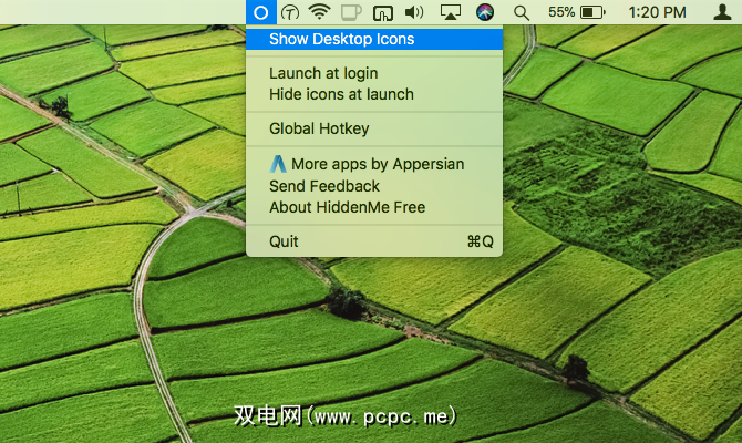 如果您不想在终端上摆弄,HiddenMe是Mac的免费菜单栏应用程序,并将其设置为每次登录时启动。
