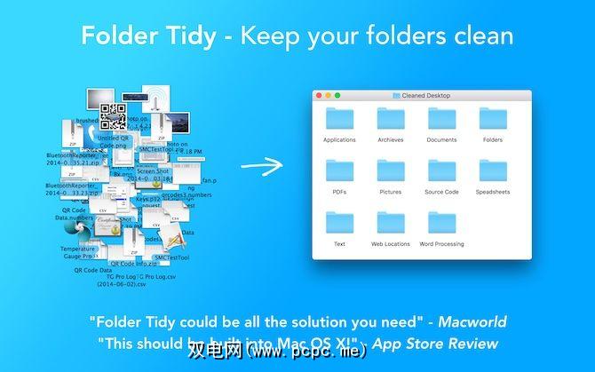 Folder Tidy(10美元,免费试用)是一个漂亮的应用程序,可让您选择文件夹并对文件进行排序带有内置或自定义规则的文件。例如,您可以选择 Desktop 文件夹,它将自动将所有文件组织到适当的子文件夹中,例如图片,文档等。如果需要更多控制,甚至可以制定自定义规则