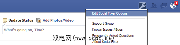 要设置内容过滤器,我们需要更深入地了解Social Fixer的选项。单击Facebook工具栏中的Social Fixer图标,然后选择 Edit Social Fixer Options 。
