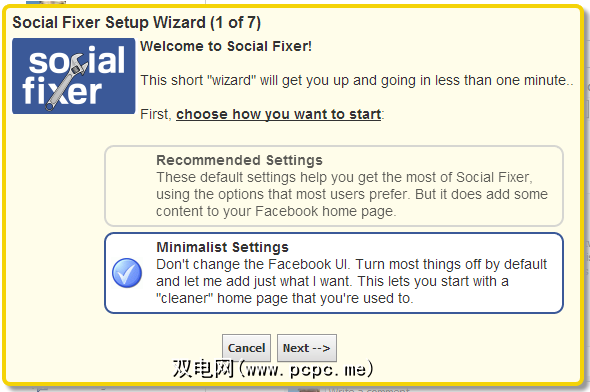 Social Fixer可用于Firefox,Chrome,Safari,Opera,其他几种浏览器(非IE)以及原始的Greasemonkey Javascript。安装浏览器插件后,转到Facebook并完成Social Fixer安装向导。如果您想让它起步较慢,请选择“最低设置"。最初,该插件可能会让人不知所措,您仍然可以启用更多调整和设置,因为您会对此感到更自在。
