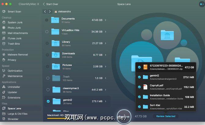 CleanMyMac X的最新成员之一就是太空镜头。这是帮助您可视化Mac上的存储并手动检查和删除不再需要的文件的好方法。