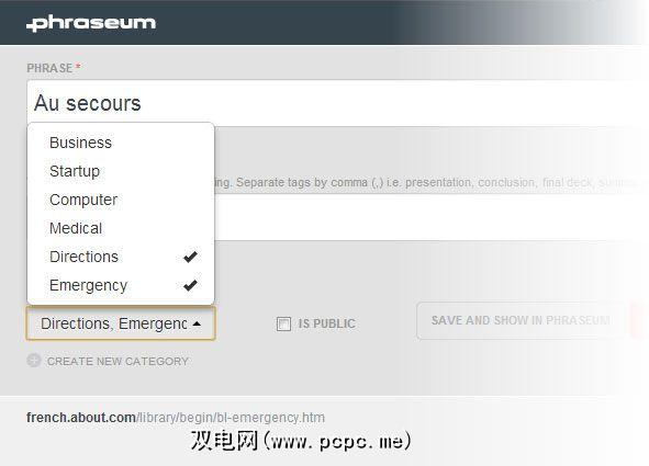 除了标签之外,短语还可以放置在特定的类别中。例如,如果您在重要会议之前有意识地收集业务术语,则可以将它们分配给“会议"或“业务"类别。这很方便,因为您可以专注于需要增加词汇量的领域。您可以在多个类别中放置一个短语。类别也可以保持为 private 或 public 。