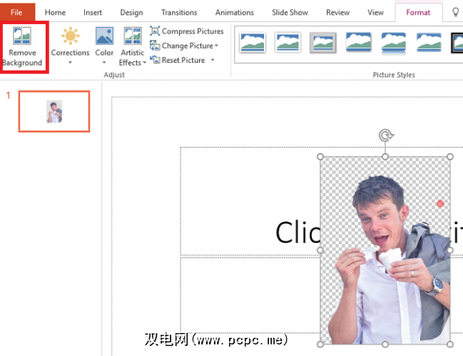 截取输出的屏幕截图,将其粘贴到Microsoft PowerPoint中,然后转到 Format> Remove Background 。