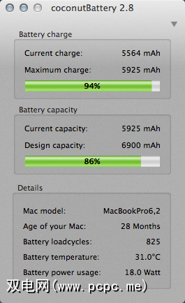 您的Mac系统报告可能无法为您提供有关电池健康的大量实用信息。但是,借助CoconutBattery,您可以更好地直观了解电池的性能。