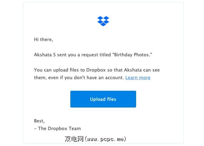 按照屏幕上的说明进行操作后,最后会有一个链接,您可以将其与您要向其请求文件的人员共享。 Dropbox还可以通过电子邮件向您发送电子邮件给您,以节省您一些时间。
