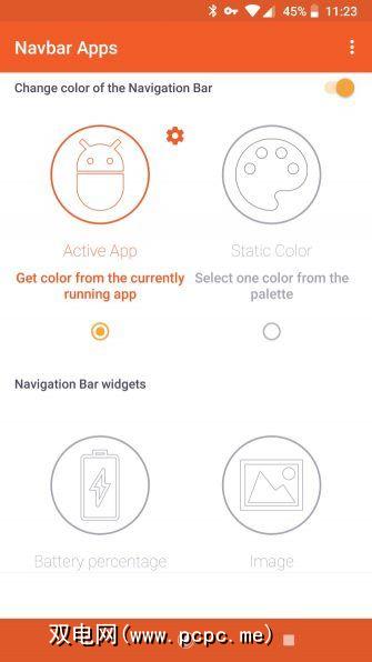 此技巧依赖于一个名为Navbar Apps的免费应用。从Google Play下载它,然后在安装后将其打开。完成后,您将看到应用程序的主屏幕。您的导航栏应立即更改为橙色以匹配应用程序的颜色。