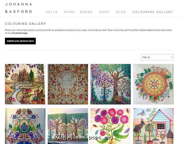 约翰娜(Johanna)自己的网站不仅推销自己的书籍:这是一种友好而新颖的布局,她的画廊鼓励歌迷提交自己的照片,包括使用的铅笔或钢笔的详细信息。