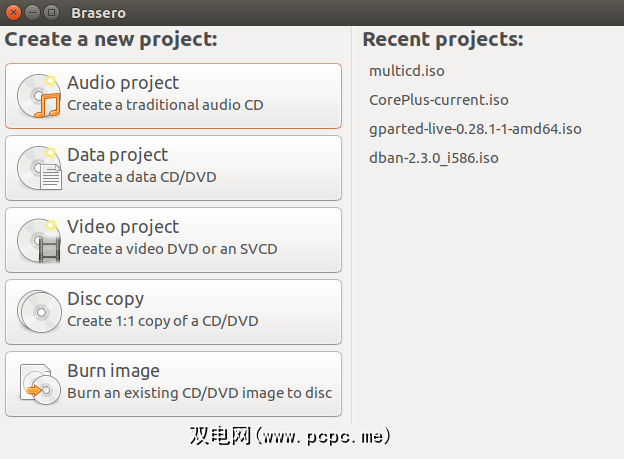 安装完成后,打开Brasero。接下来,插入兼容的黑色CD或DVD。