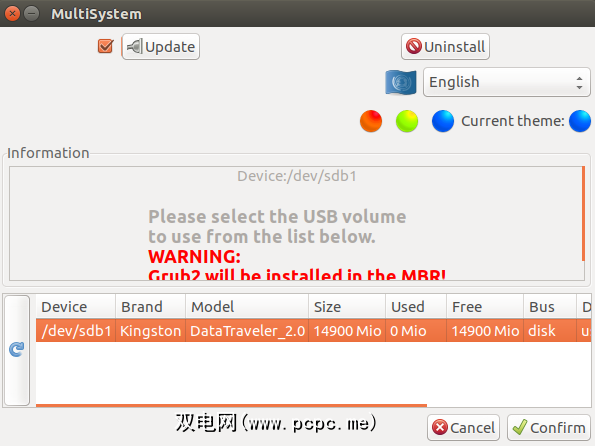 打开MultiSystem。在底部面板中选择要使用的USB驱动器,然后按确认。