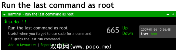 该功能可能仅对Ubuntu用户或其他使用sudo的系统有用。它使您可以重新运行以sudo执行的最后一条命令,如果您忘记添加重要的序言,则可以完美运行。