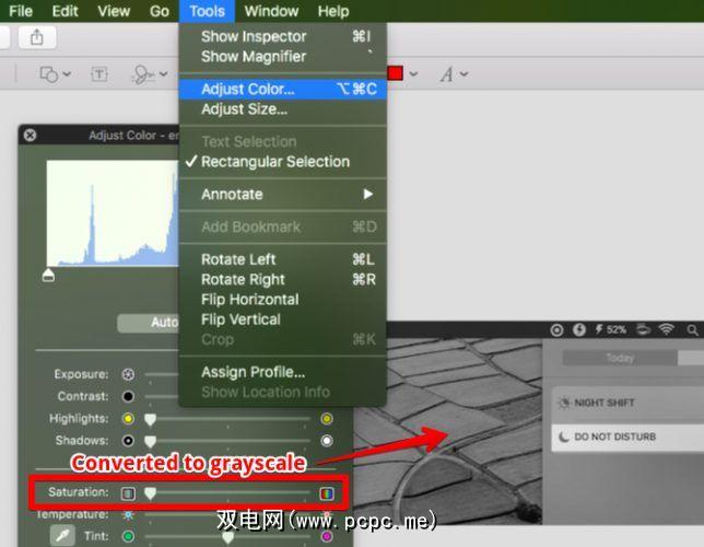预览中没有一键式灰度转换选项,但是方法很简单。