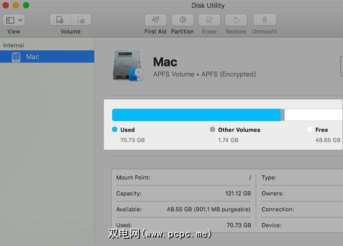 磁盘实用程序(位于应用程序>实用程序下)为您提供了Mac硬盘存储的概述。如果要详细了解macOS如何使用该存储,请访问菜单栏中Apple图标后隐藏的位置:关于本机>存储>管理。