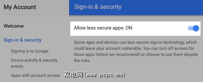 尽管很可能,环聊只有在您转到Google帐户设置并设置安全应用以登录和安全部分中的打开。 Google警告您,这是安全隐患,您可以自行决定是否承担此风险。