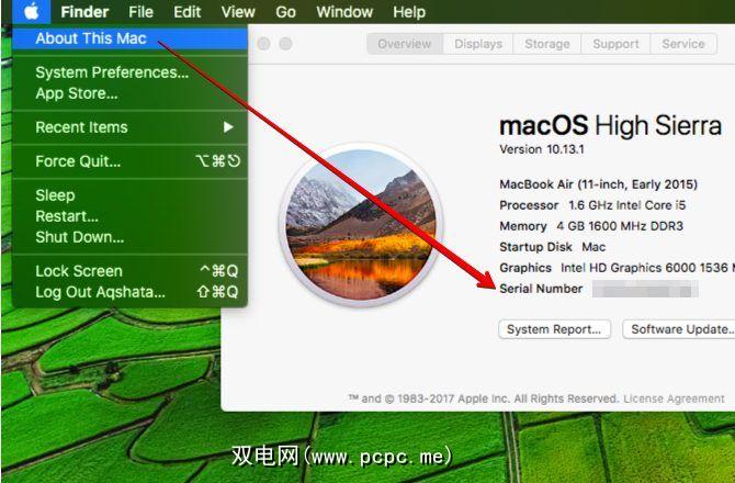 您的Mac和其他Apple产品一样,带有唯一的标识号或序列号。查找此号码的最简单方法是,单击菜单栏中左上方的Apple图标,然后单击显示的关于本机菜单项。