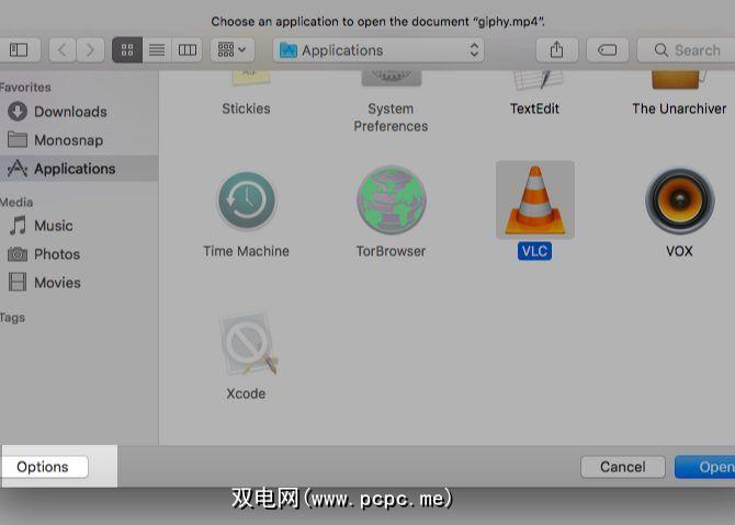 如果缺少始终打开方式复选框,该怎么办?好吧,一旦单击Finder弹出窗口左下方的 Options 按钮,您应该就能看到它。