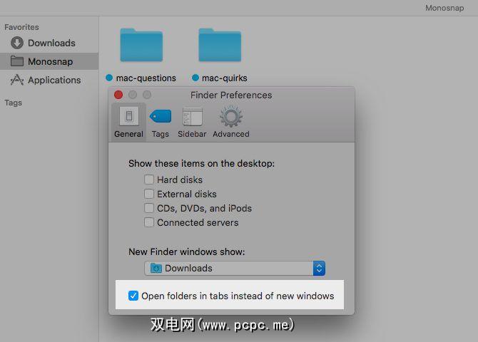还有另一种快速打开选项卡中文件夹的方法:双击文件夹时,按住 Command 键。对于侧边栏文件夹,秘密是命令加单击。仅当您在 Finder>首选项>常规下启用了在选项卡中打开文件夹而不是新窗口时,这两个技巧才起作用。
