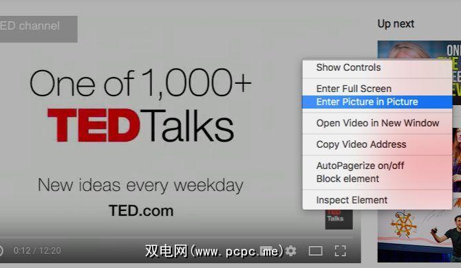 您已经了解了Safari的画中画模式。右键点击您正在播放的YouTube视频。现在,再次右键单击以显示输入画中画菜单选项,然后单击它。完成此操作后,即使您在应用之间切换,该视频也会弹出并停留在所有窗口的顶部。