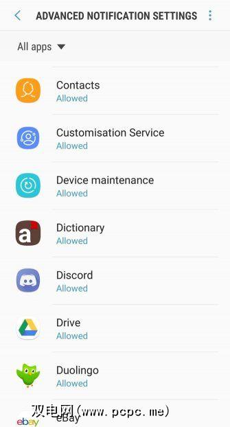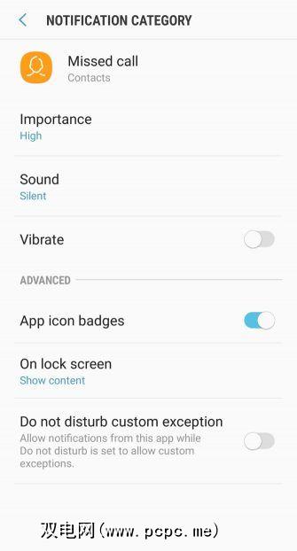 否则,打开设置并点击通知>高级>联系人>未接来电强>。点击重要,并将其设置为紧急。您也可以点击声音并设置其他声音。