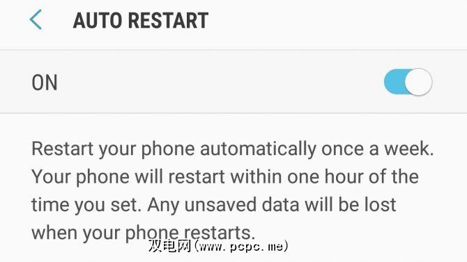 如果没有任何反应,请打开设置,然后转到常规管理>重置>自动重新启动 >。将功能打开滑动并编辑时间和日期至不久的某个时间(请注意显示手机重启时显示的条件,例如屏幕关闭)。等待手机重新启动,然后尝试手动将其关闭。
