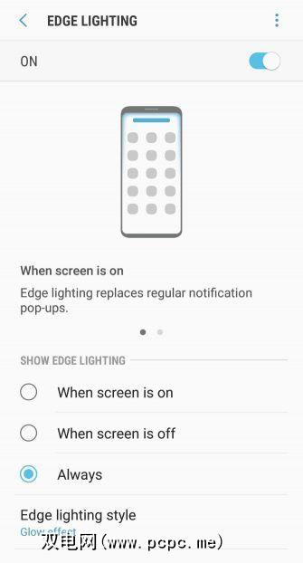 如果未为您显示,请打开设置,然后转到显示>边缘屏幕>边缘照明。将显示Edge照明设置为始终。