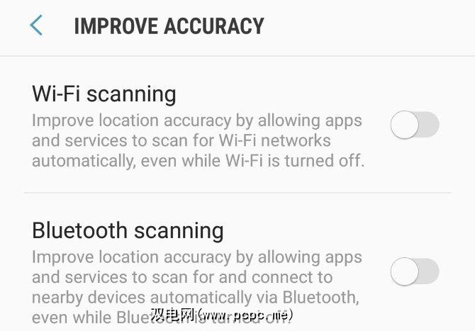 位置准确性功能还会消耗您的电池。即使将Wi-Fi和蓝牙用于其他目的也可以帮助您检测位置,但是您可以将其禁用。为此,请打开设置,然后转到连接>位置>提高准确性。滑动 Wi-Fi扫描和蓝牙扫描。