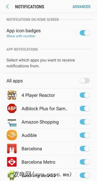 如果点击管理通知,则可以选择可以使用Edge的应用灯光。要启用所有这些功能,请滑动所有可用的应用程序。