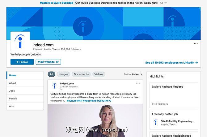 尽管存在重叠之处,的确Indeed在LinkedIn上占有相当大的份额。除了刊登广告发布职位并谈论在公司工作的方式,Indeed还发布了#MondayMotivation报价,求职技巧以及指向有关求职资源和趋势的文章的链接。它的最终目标是帮助您在一个拥挤的就业领域中缩小选择范围,以帮助您找到理想的工作。