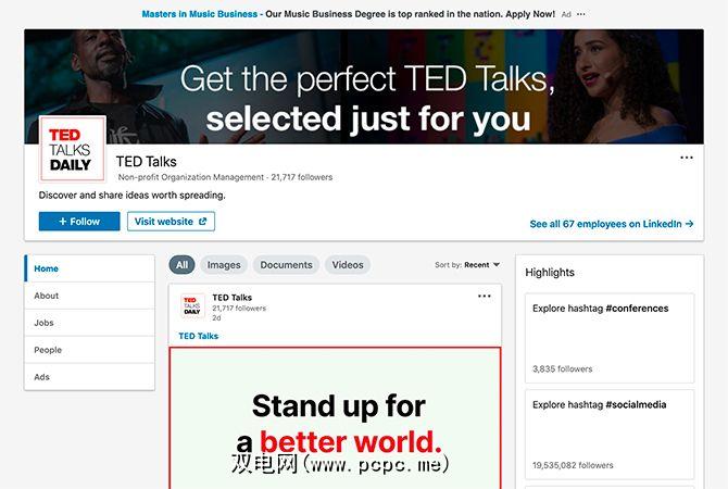 Ted Talks是另一家有用的,活跃的公司,您应该在LinkedIn上关注。