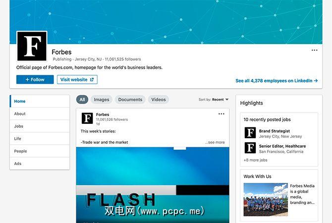 《福布斯》是一本在线杂志,对那些对公司创新和金融新闻感兴趣的人来说,是一本非常有用和权威的资料。它在LinkedIn上也非常活跃,并定期在公司页面上发帖。