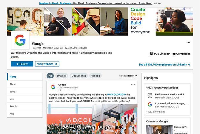 Google是世界上最大的技术公司之一。它拥有一个非常活跃的LinkedIn页面,如果您使用任何种类的Google产品(几乎所有人),都完全值得关注。