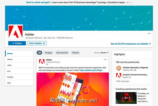 您应该在LinkedIn上关注的另一家非常有用的公司是Adobe,特别是如果您的工作与设计有关。
