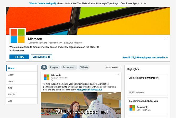 尽管我们关注的是技术,但在LinkedIn上可以效仿的另一家有用的公司是微软。如果您使用Microsoft产品,尤其是这样,就像Google一样适用于我们所有人。