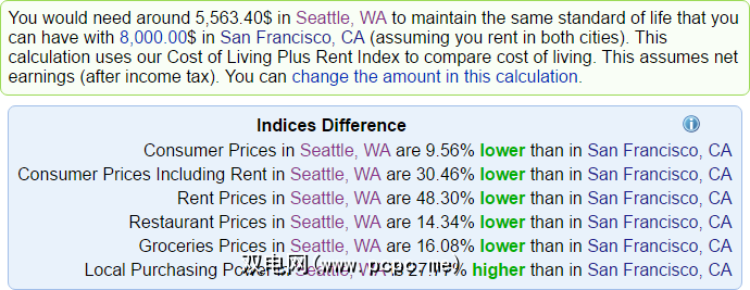 如果您想搬到某个地方,您将无法忽略生活成本的差异。每年5万美元的薪水可能意味着在农村小镇上可以奢侈,但在一个房屋短缺的大城市,贫困边缘。生活成本告诉您您的每一美元能带走多远。