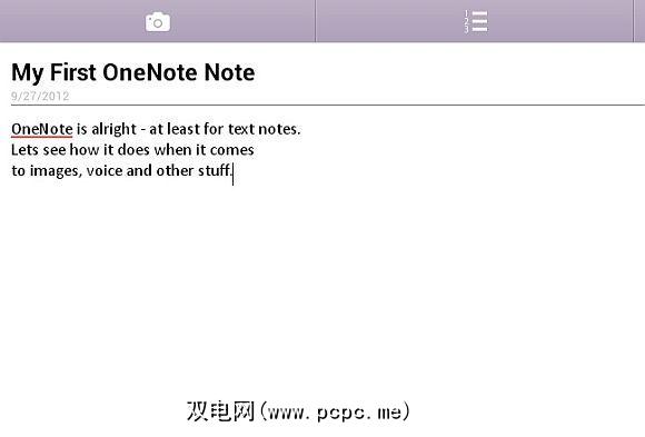 OneNote移动版的目的是尽可能简化和方便得到。只需点击大的“ +"按钮,即可立即添加新笔记。您可以快速键入文本注释,该文本注释将立即同步到您的在线Microsoft Live帐户。不需要保存按钮-它会自动保存。