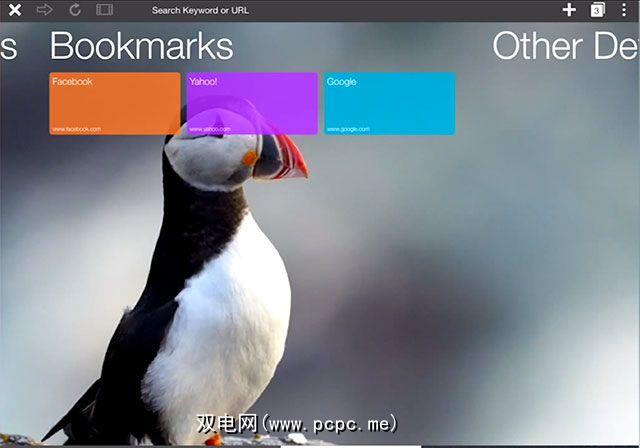 在其他功能方面,它是相当有限的,但是您会找到一个基准标准,即离线保存页面并与浏览器的桌面版本同步。搜索栏和URL栏是分开的,这可能会使某些用户感到烦恼。
