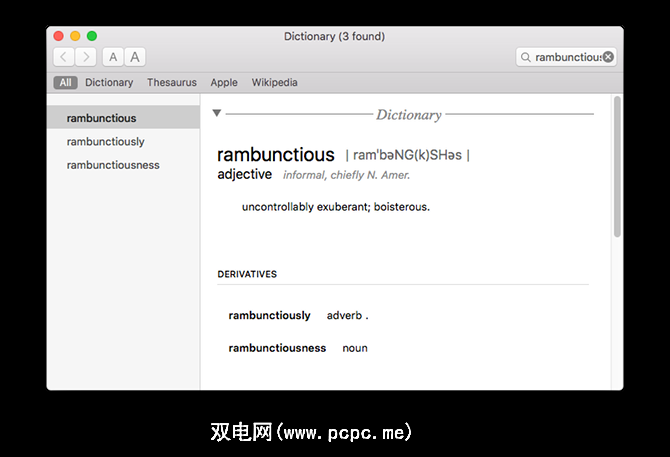 Dictionary.app(有用)::一个简单但可能有用的应用程序,如果您需要访问字典的话,同义词库或Wikipedia。分别由新牛津美国词典和牛津美国作家词库提供。我个人从未使用过它。