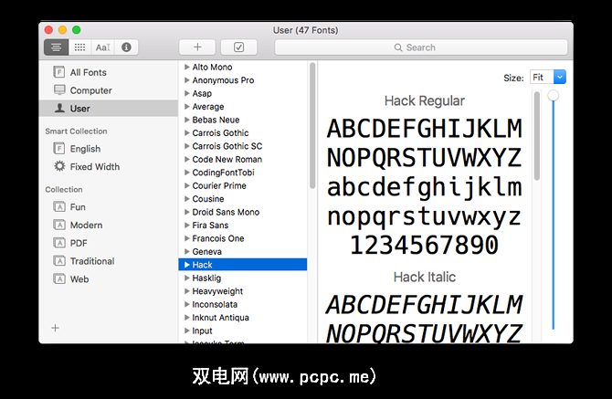 Font Book.app(非常有用):在Windows或Linux上,Mac附带了一个内置的字体管理实用程序,可以轻松地从系统中安装,预览和删除字体系列。我喜欢它是因为我是个大字体狂,并且Font Book可以将系统字体与用户安装的字体分开,从而更容易知道我安装的字体。