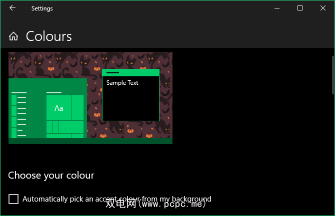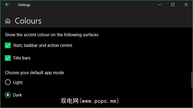 向下滚动,您可以选择将颜色应用于开始,任务栏和操作中心和标题栏。